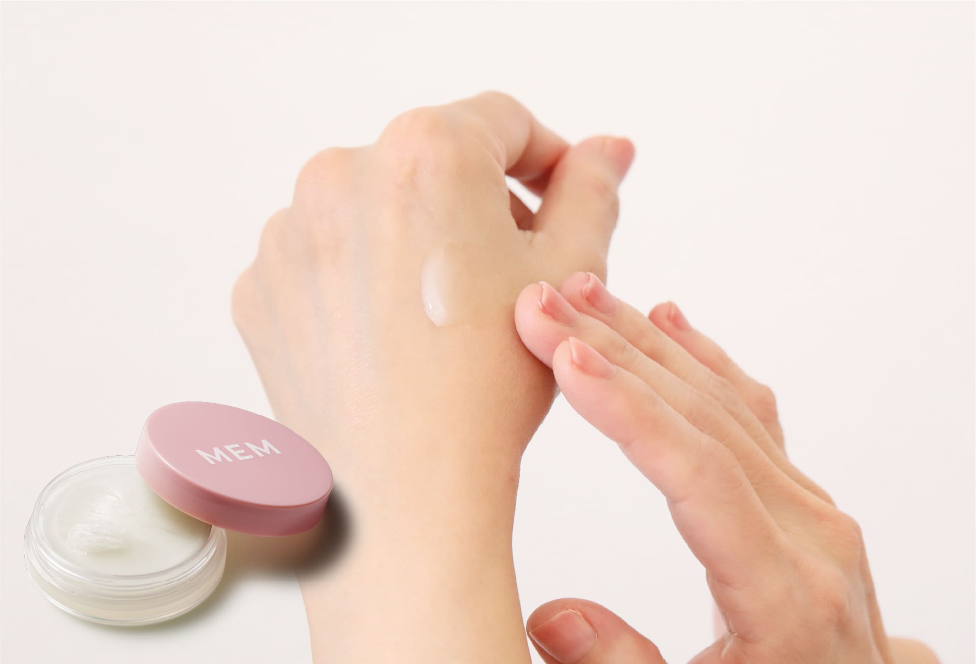 血行が悪い時は、手と手を合わせて温めてからスキンケアをおこなうのがおすすめ。バームやクリームが体温で伸び広がり、肌になじみやすくなります。