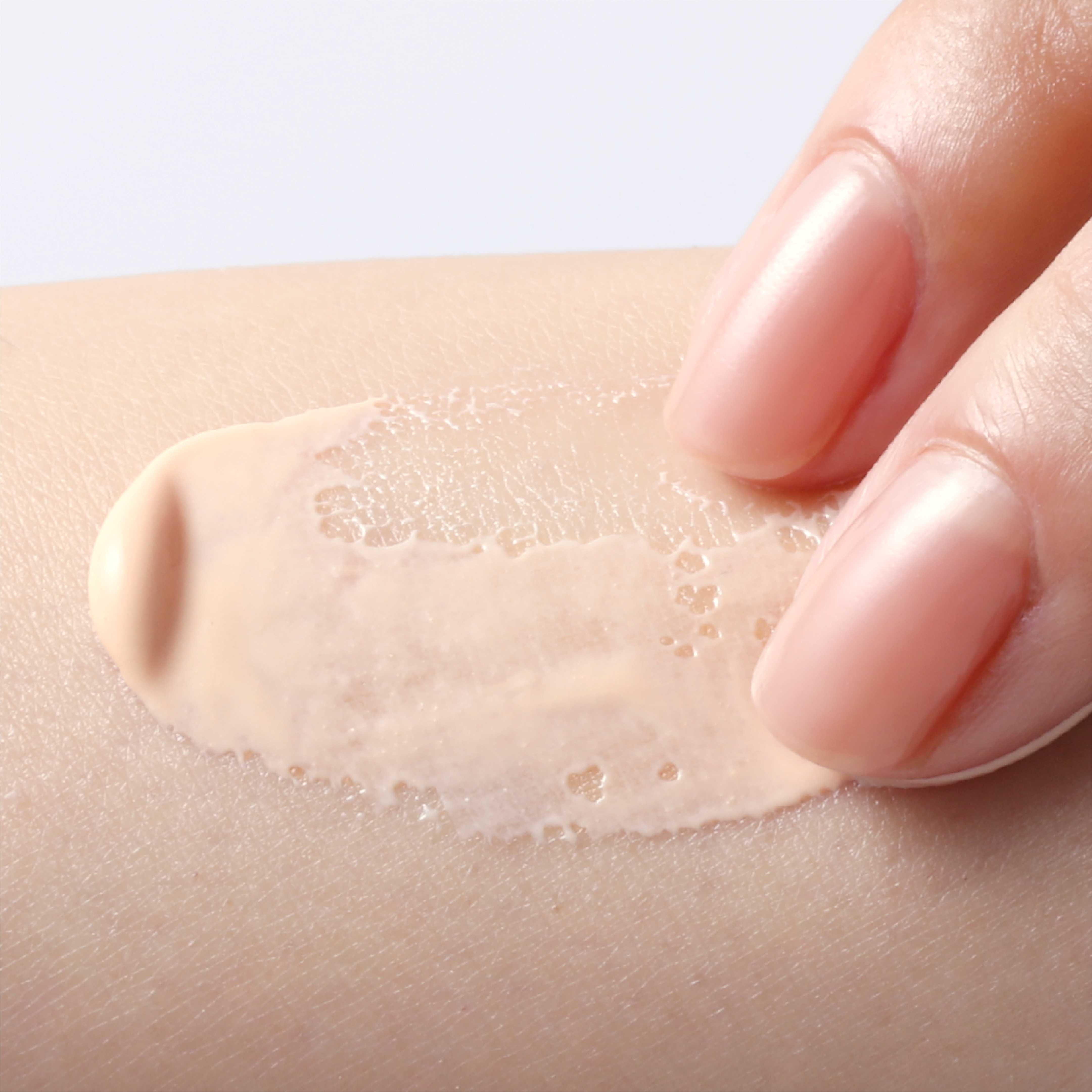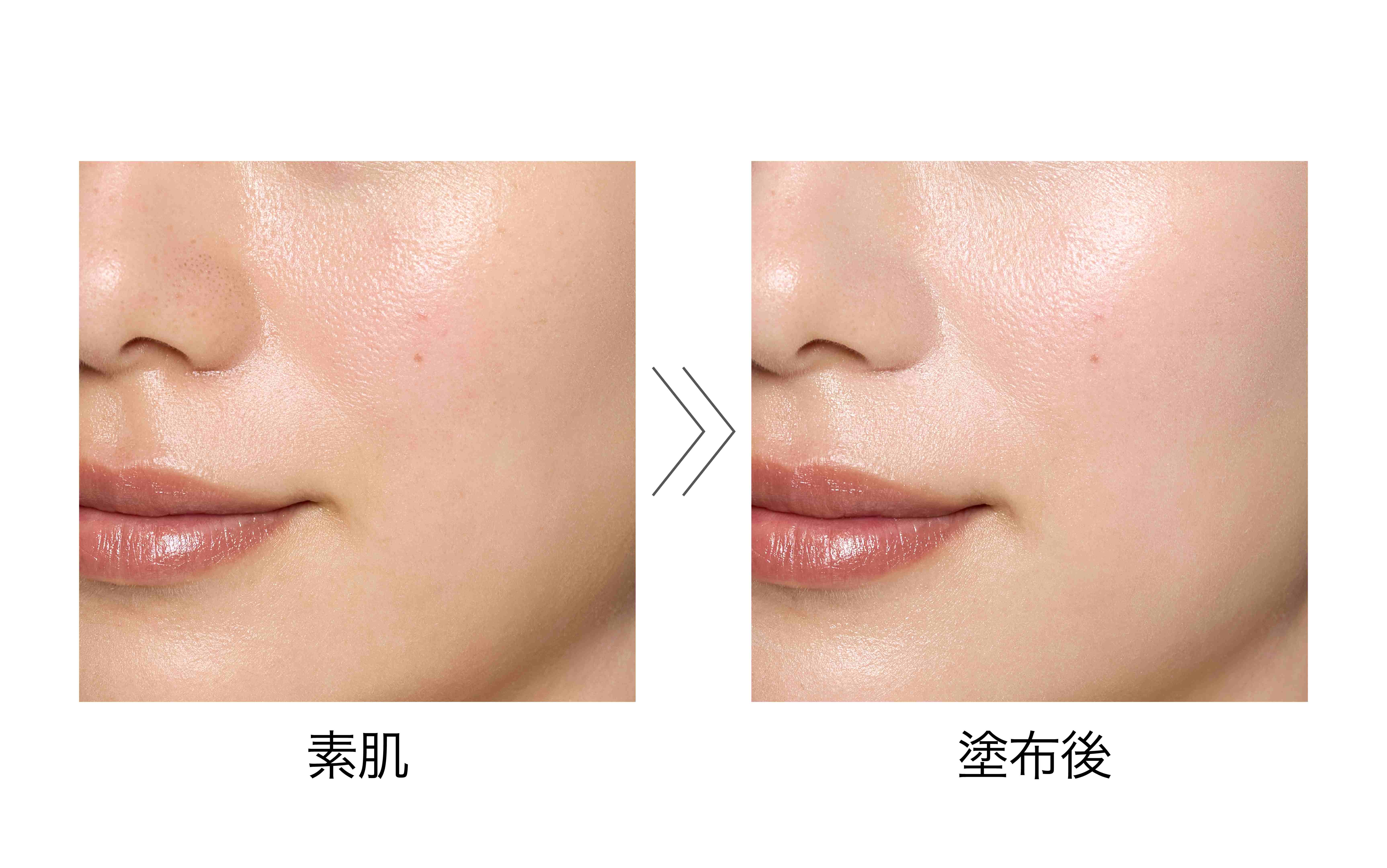 どのような肌色の上に重ねても白浮きせず、まるで素肌そのものが内側から発光しているかのような、透明感*2とツヤに満ちた仕上がりへ。