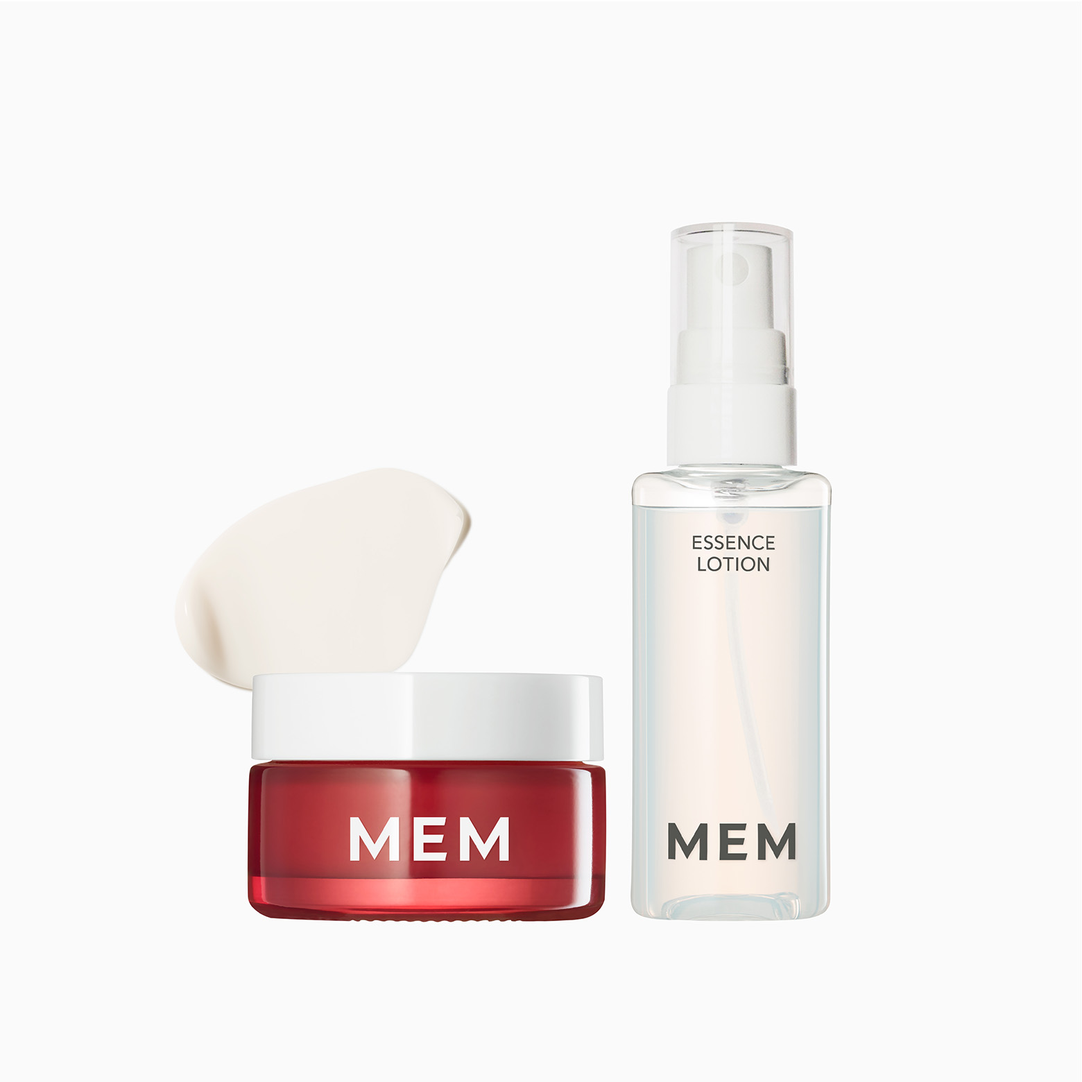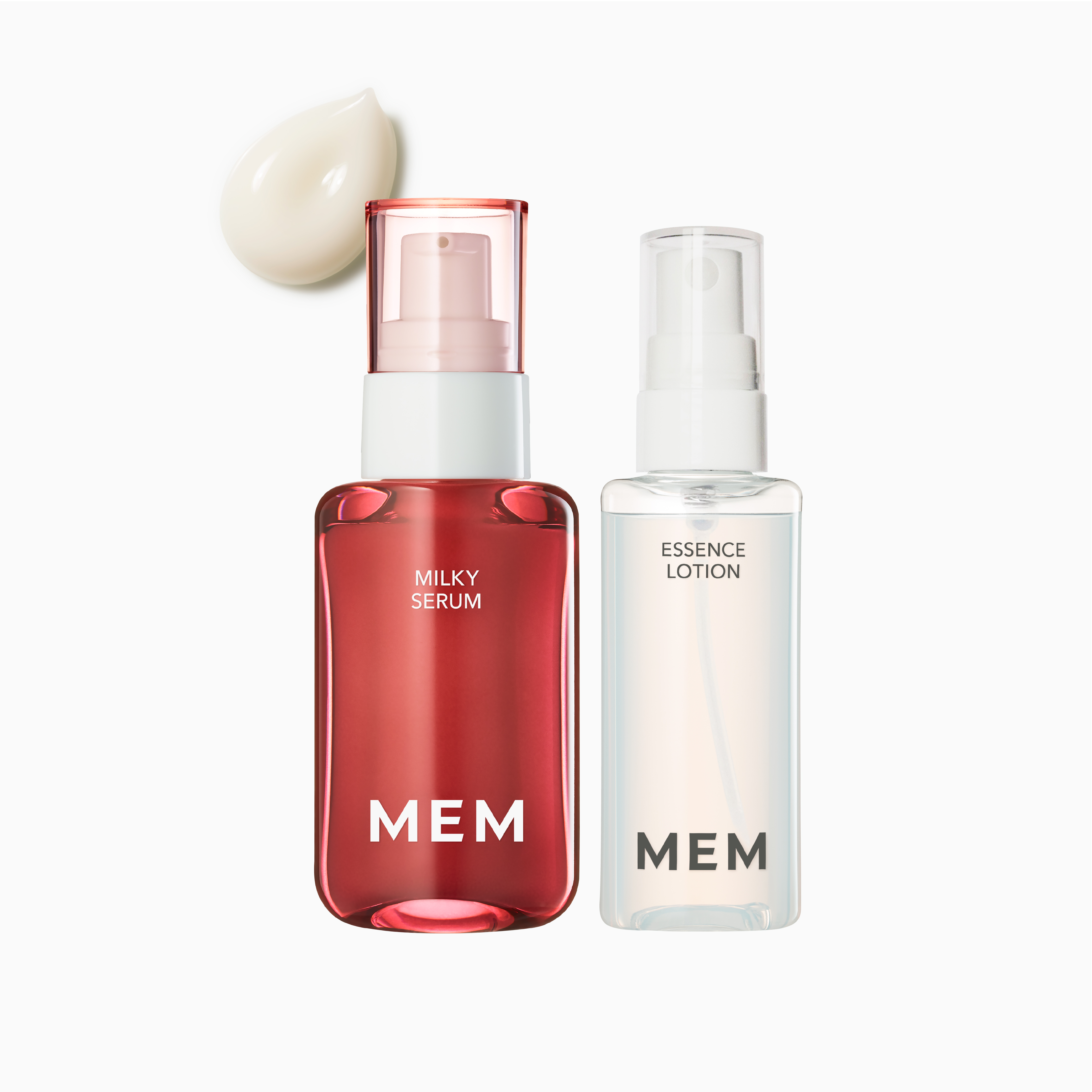 MEMのセラミルクとエンリッチクリームなら、水溶性成分と油溶性成分が肌のモイスチャーバランスと整えながら、ふっくら&もっちり立ち上がるような艶めきのある肌に整えます。