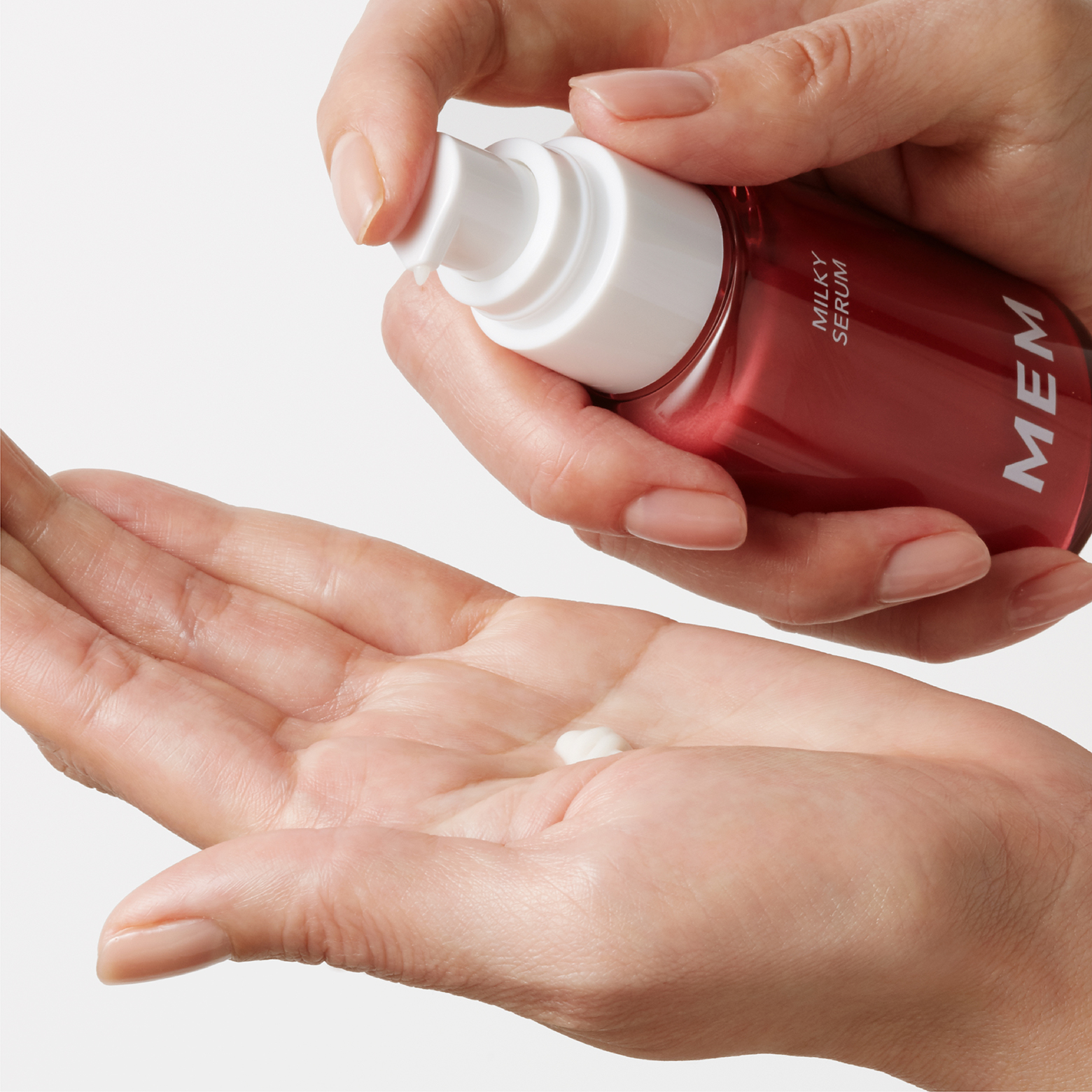 化粧水の後、1~2プッシュを手に取ります