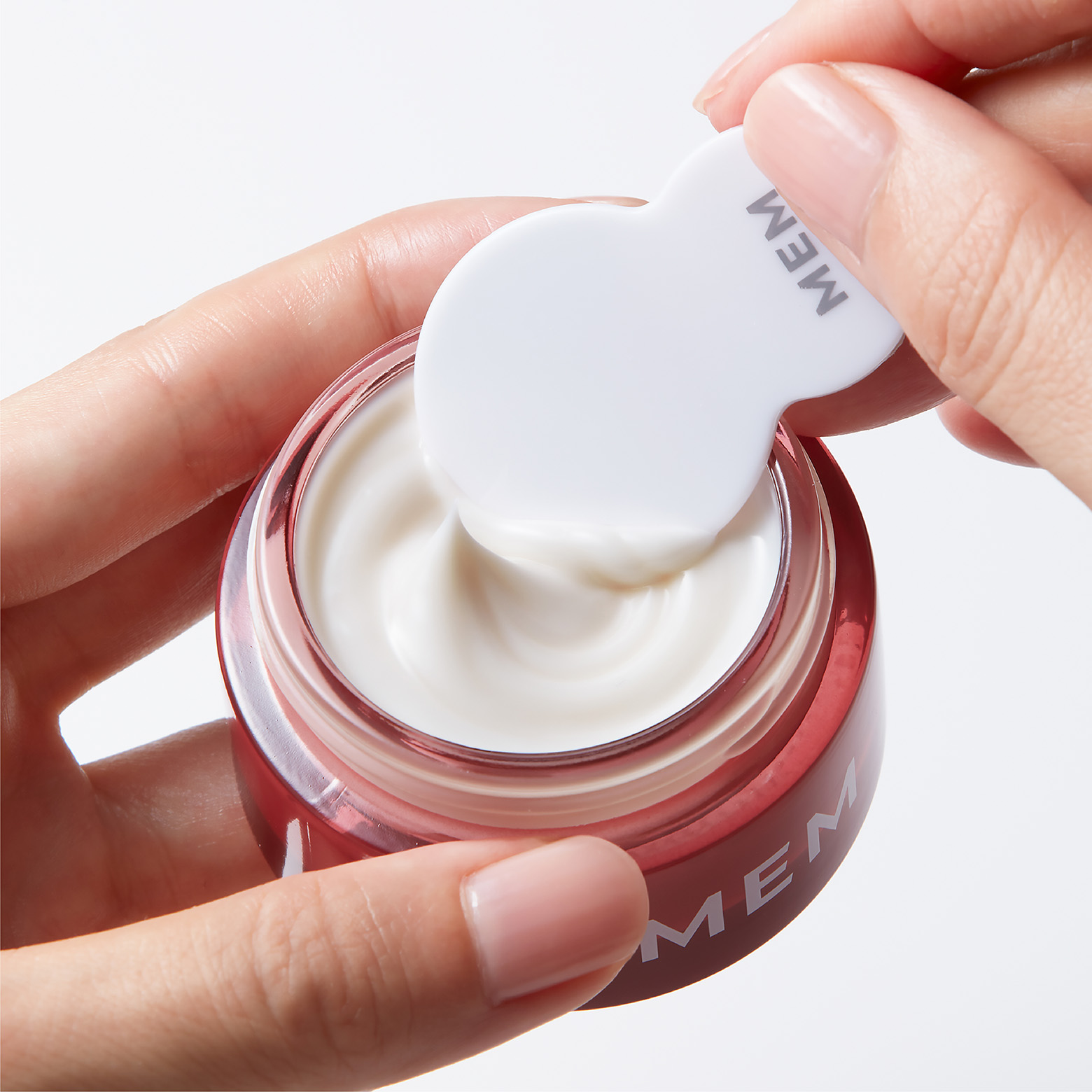 朝晩のお手入れの最後に、適量を付属のスパチュラを使って手に取ります