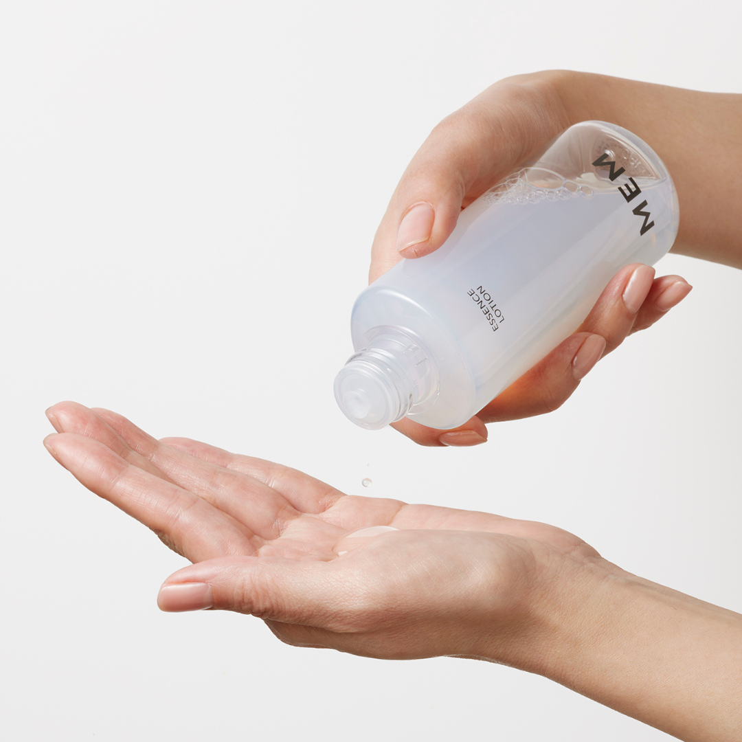 エッセンスローションを手に取る